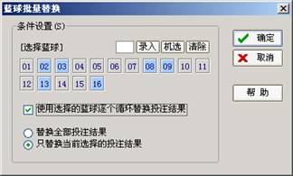 2、如果需要使用选择的蓝球逐个循环替换投注结果中的蓝球号码,则选中“使用选择的蓝球逐个循环替换投注结果”。