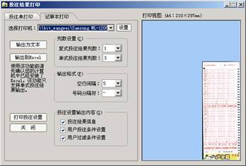 打印投注:对投注结果按指定格式进行排版打印。同时也可以打印投注设置内容。