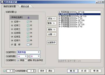2、设置过滤类型:选择您要使用的过滤选项类型,现提供的有号码和值、尾数和值、尾号位积和、奇号和值过滤等。