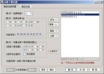 3、设置保留范围:设置投注结果必须满足的余数个数值,如果投注结果的余数个数不满足该范围值,则被滤除(不考虑容错等设置)。
