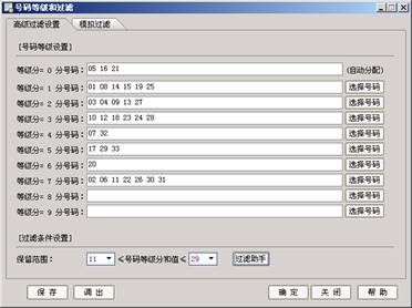 2、设置保留范围:设置投注结果必须满足的号码等级和值最小、最大范围值,如果投注结果不满足该范围,则被滤除(不考虑容错等设置)。