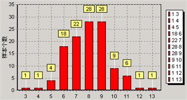 由上面的统计,我们可以得出的一般情况下的合理断点数的取值范围,但这只是我们的建议,具体针对某轮足彩的投注时,还是要有所变化的。下面我们给出历史足彩的断点数的频率分布总览,供各位彩民参考,以做到审时度势、随时而变,用最小的投入,换来最大的回报。