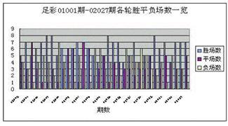我们统计了足彩01001期~02027期的中奖号码,其原始资料为如下: